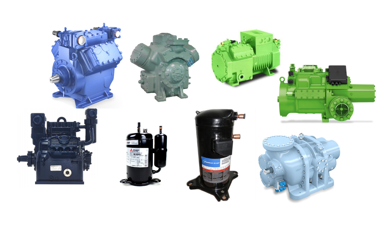 Η εταιρεία μας διαθέτει συμπιεστές ανοιχτού , ημίκλειστου , κλειστού τύπου κορυφαίων κατασκευαστών στους τομείς ψύξης και κλιματισμού , Daikin Bock Bitzer York Copeland Sabroe Carrier κτλ για τους τομείς της ναυτιλίας , βιομηχανίας